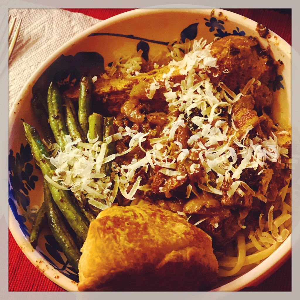 About a week ago, on a particularly sticky and swampy Texas Sunday evening, I riffed on a recipe previously tried (and loved) by on the of the OG Domestic Goddess’, Nigella Lawson. I didn’t grow up on French cooking by any stretch of the imagination, and I didn’t attempt Julia Child’s coq au vin until my Grandmama gifted me her work first edition of ‘Mastering the Art of French Cooking’ about a decade ago. Ms. Lawson does a smash-bang job of a summer facelift for the tried and true stew with her Coq au Riesling as posted on the New York Times page. I’ve made her version at least twice and it’s a tasty one. On this particular sweltering evening, the dish sounded delicious, but I had not pre-shopped for it exactly…