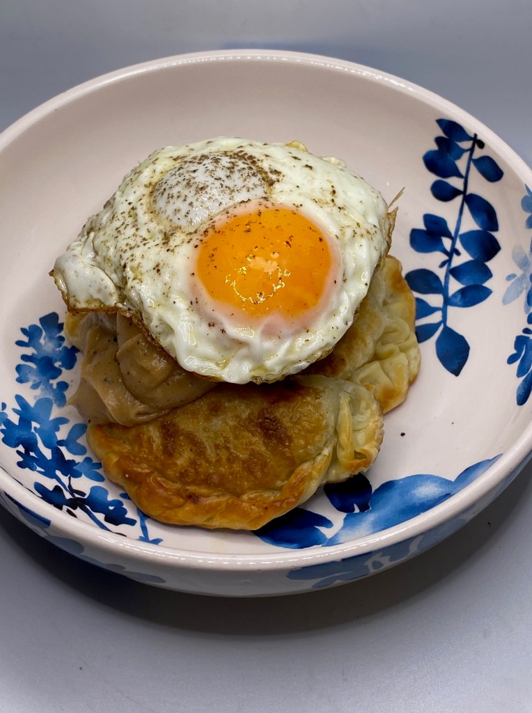 Having recently celebrated the holiday where everyone who is decidedly not Irish gets to pretend to be, I present to you Loco Moski: a mashup between two cultures that I am (mostly) not – Hawaiian and Polish. This flashed by as a fleeting no-recipe-offered-on-the-app from Food Network a few months back and I took note. I love a good Hawaiian Loco Moco (traditionally chargrilled burger patties with brown, decadent gravy served over rice and topped with a fried egg.) I also love pirogis (the Polish version of a pocket pie.) While a bit strange to put burger patties and fried egg on top of fried pastries, this seemed like a good fit for me to try out.