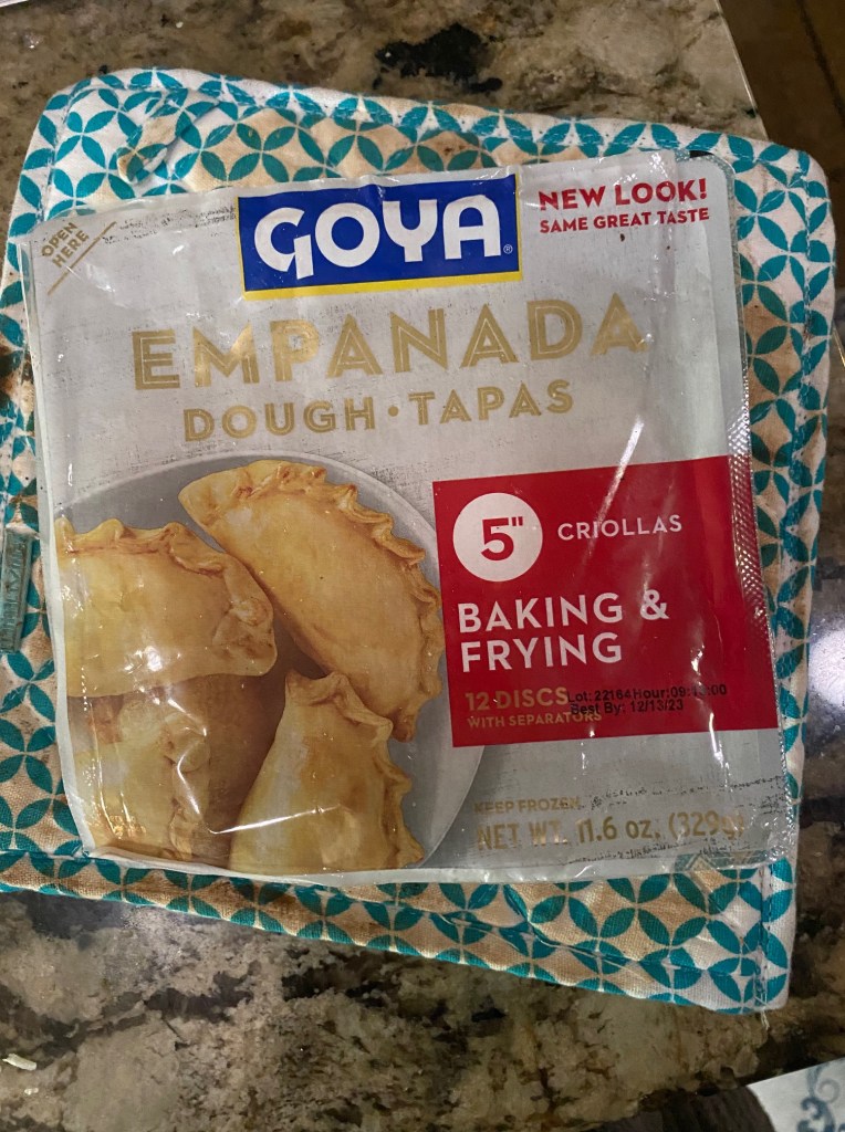 - Goya Pre-made empanada wrappers (from the frozen section, the red label ones that say for baking or frying)