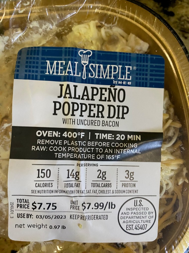 - One HEB MealSimple Jalapeño Popper Dip